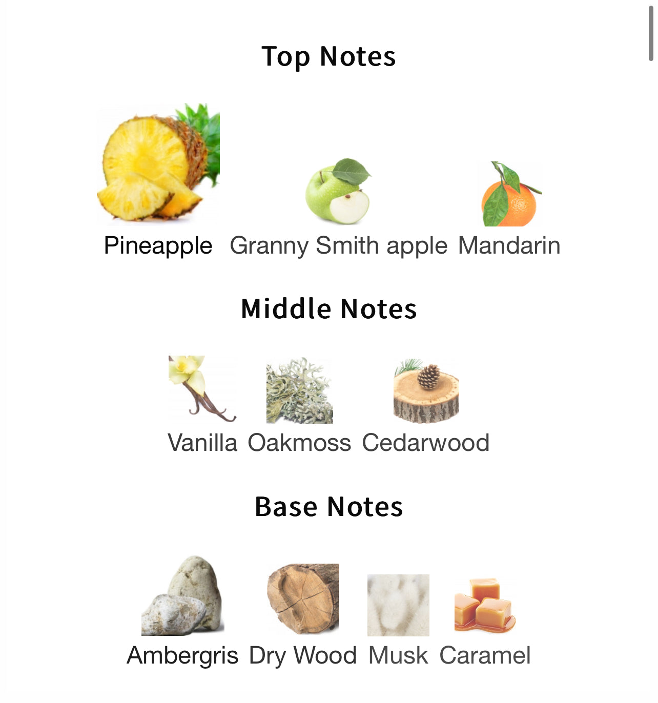 (pineapple, bergamot, black currant, musk, oakmoss — fruity, woody, and sophisticated)