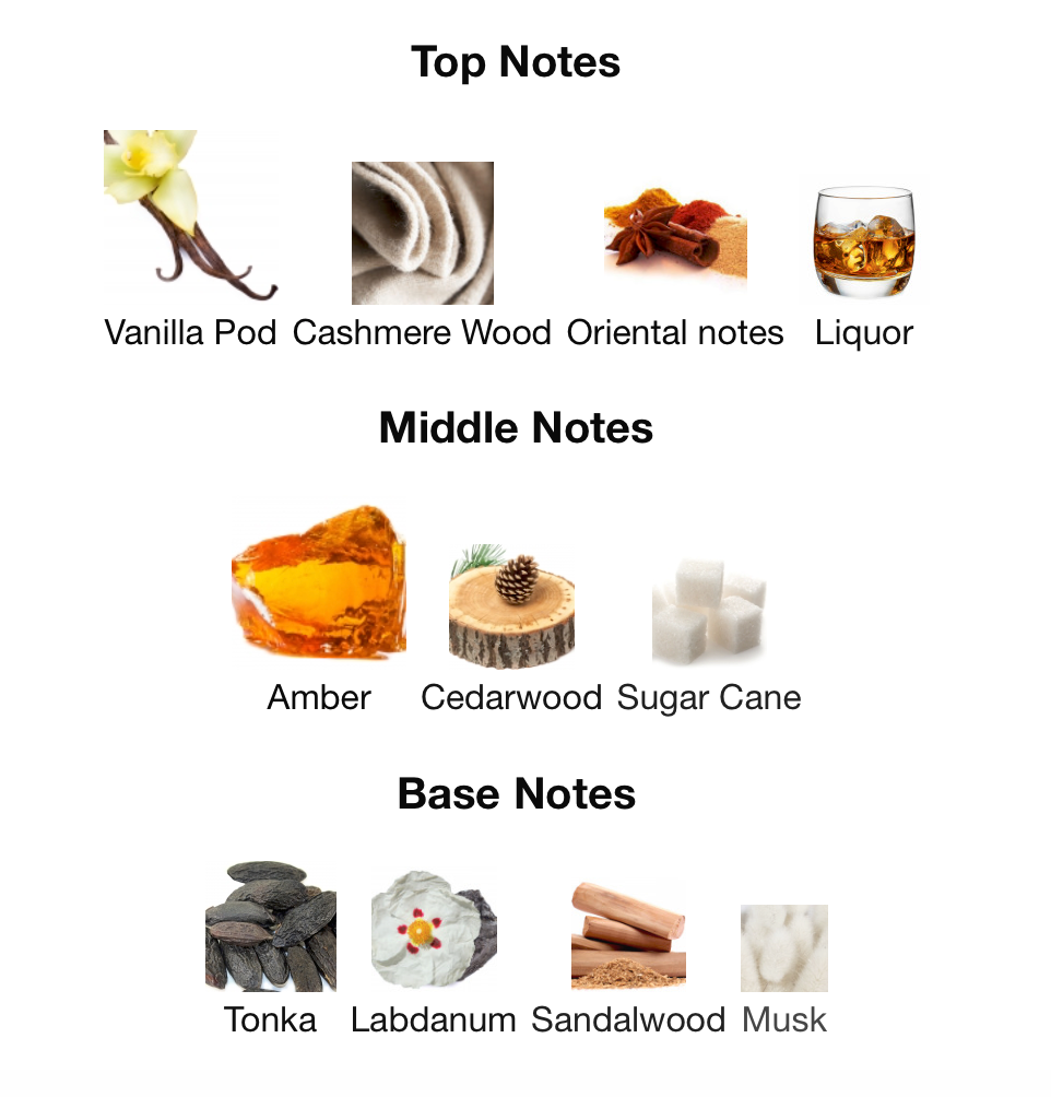 Top: Vanilla Pod, Cashmere Wood, Oriental Notes, Liquor