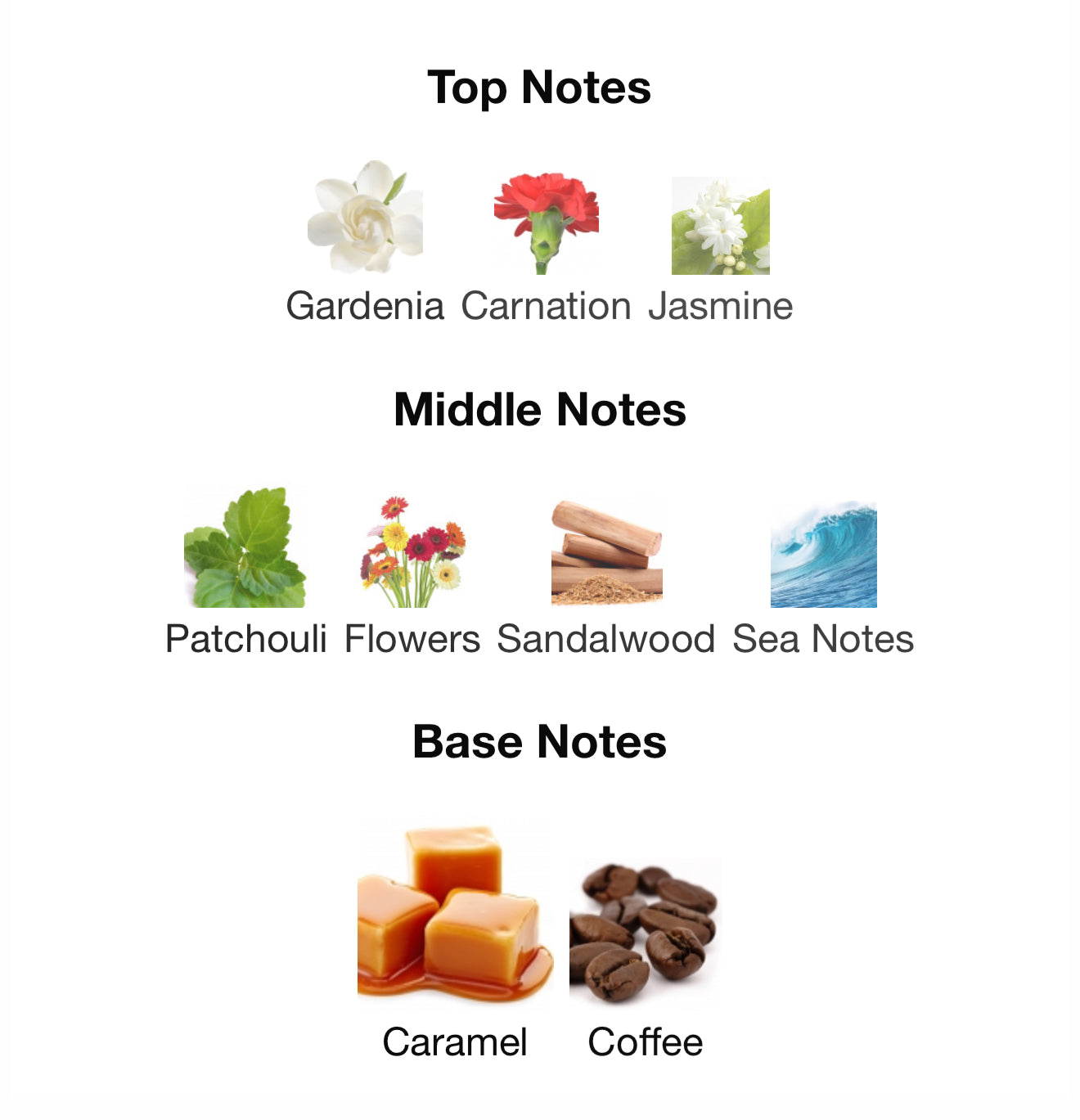Top: Gardenia, Carnation, Jasmine