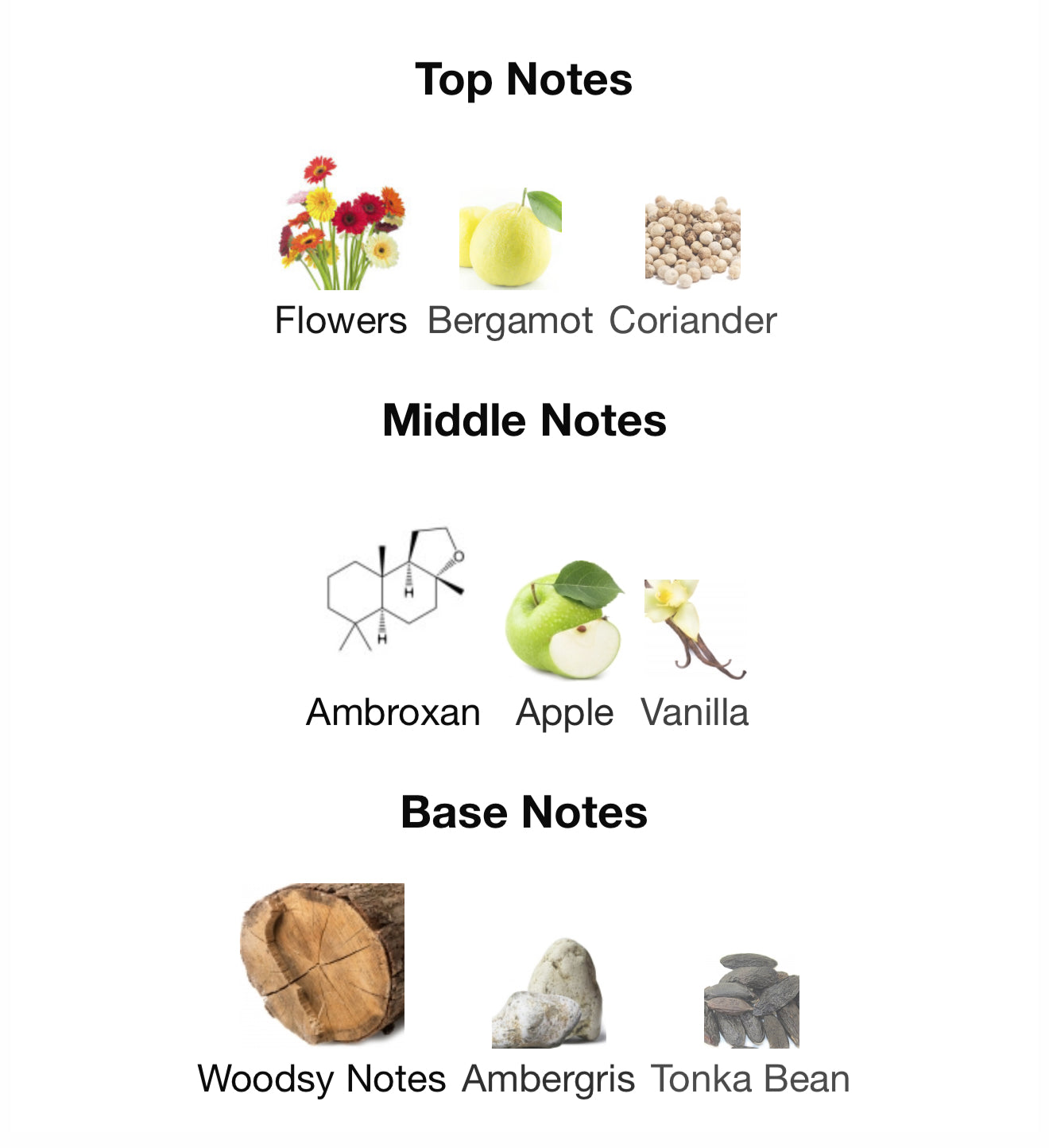 - Middle: Ambroxan, Apple, Vanilla