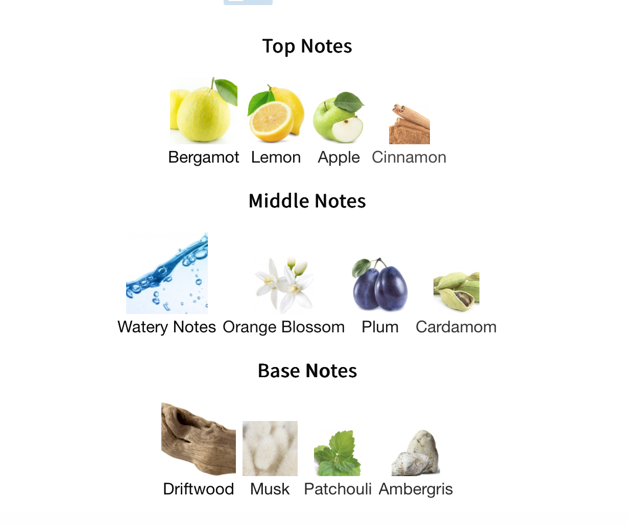 Top: Bergamot, Lemon, Apple, Cinnamon