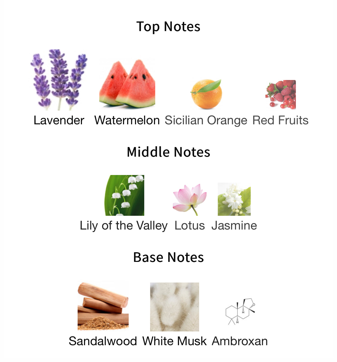 - Top: Lavender, Watermelon, Sicilian Orange, Red Fruits