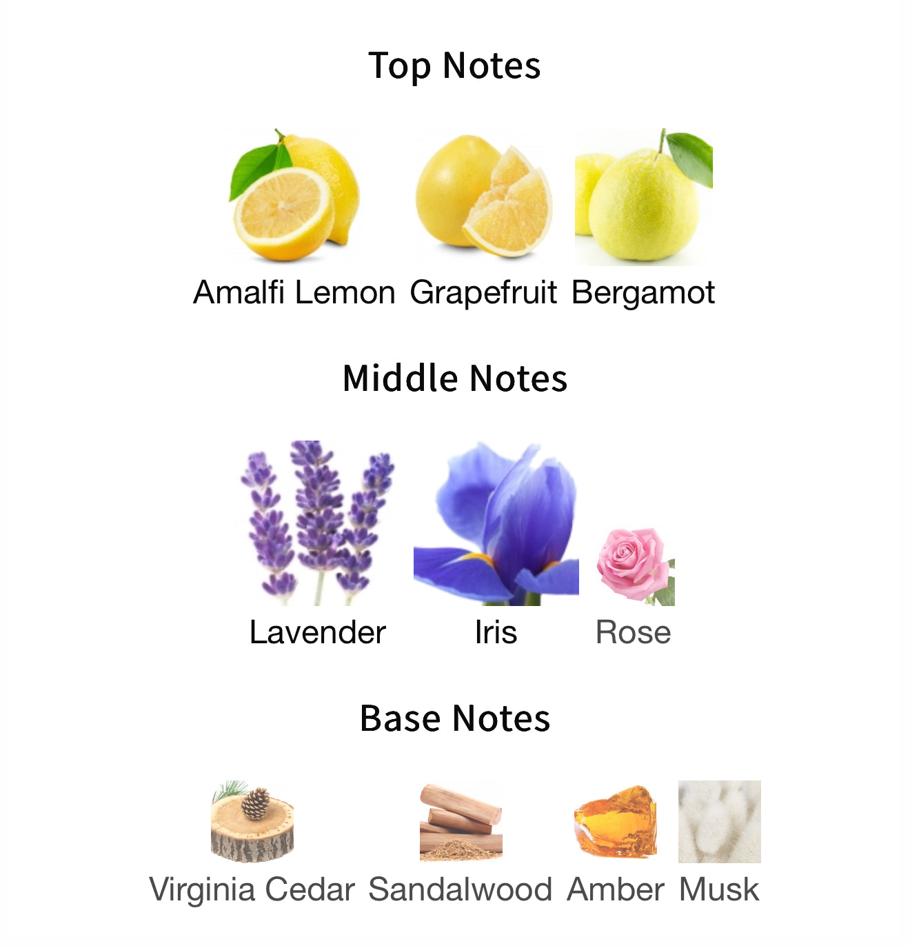 In the heart, classic lavender, velvety iris, and romantic rose intertwine, blending barbershop nostalgia with soft floral elegance. The dry down reveals a smooth, grounding base of Virginia cedar, creamy sandalwood, warm amber, and cozy musk, leaving a gentle yet confident trail.