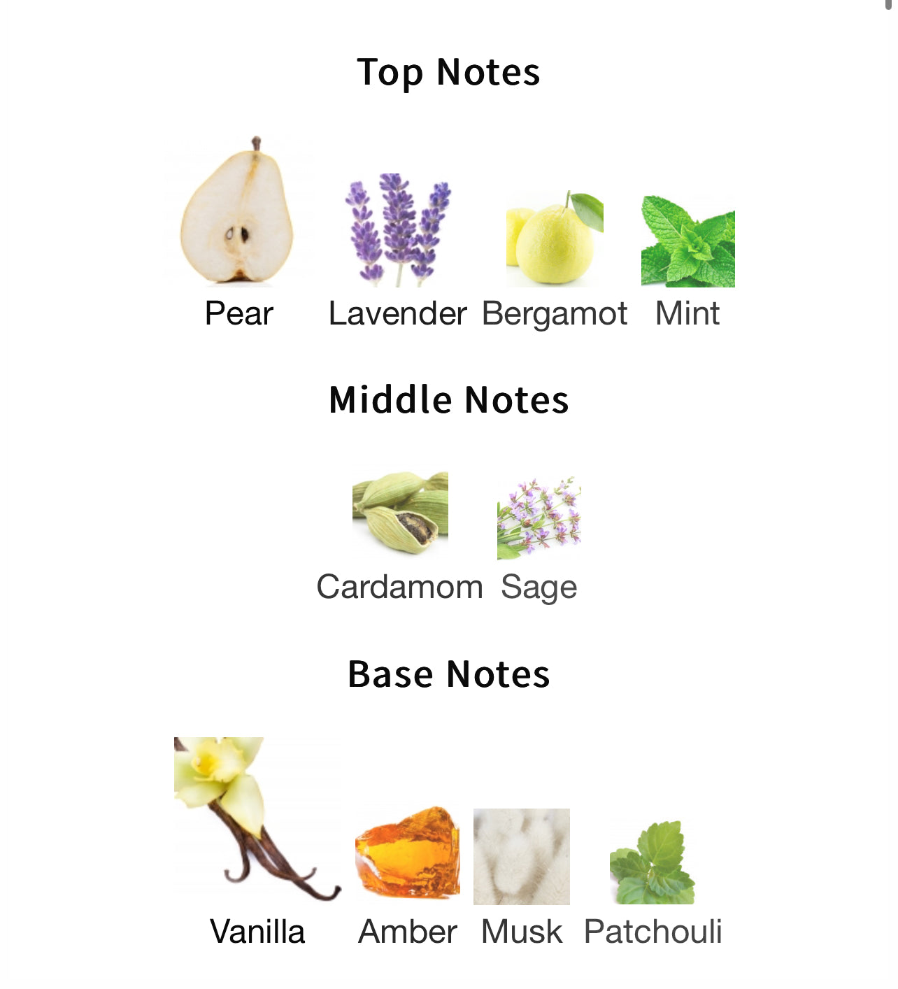 (pear, lavender, vanilla, mint — sweet, spicy, and seductive)