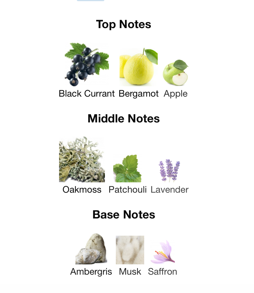 (blackcurrant, bergamot, apple, oakmoss, musk, saffron — bold, smoky, and long-lasting)