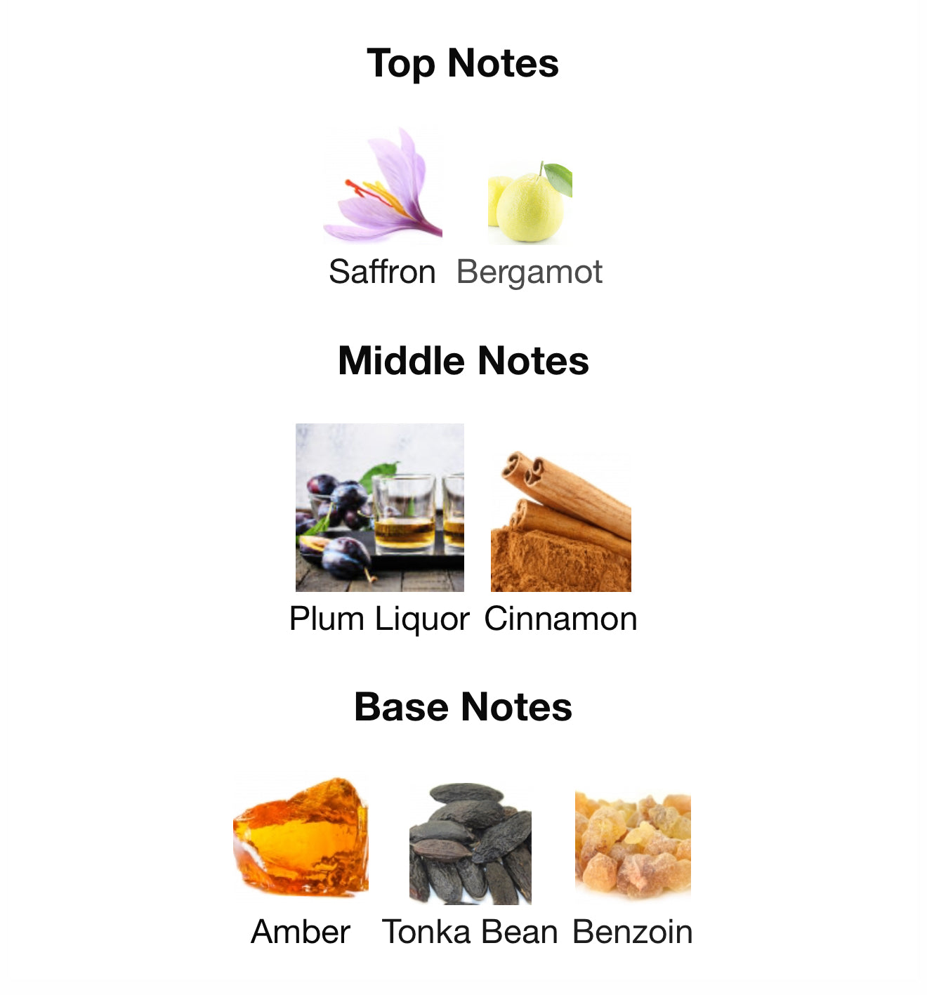 It opens with luxurious saffron and bright bergamot — giving a spicy-sweet first impression. The heart is where the magic happens: juicy plum liqueur and cinnamon create a boozy, fruity, spicy center that’s both rich and playful. The base is warm and sensual, with amber, creamy tonka bean, and resinous benzoin giving the fragrance long-lasting depth and sweetness.