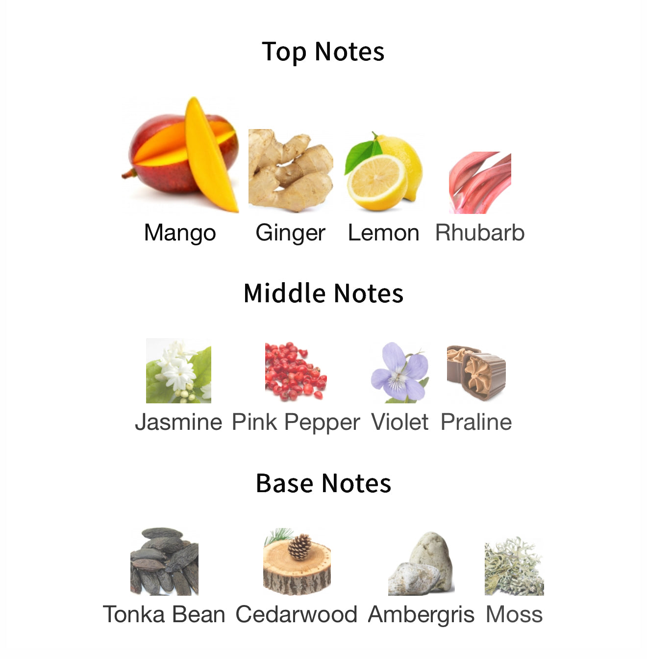 A tropical inferno with a sensual heart, Vulcan Feu ignites your senses from the very first spray. Inspired by the legendary God of Fire, this vibrant blend opens with an electric spark of ripe mango, fiery ginger, and zesty lemon — tempered by a tart bite of rhubarb. It’s juicy, sharp, and magnetic all at once.