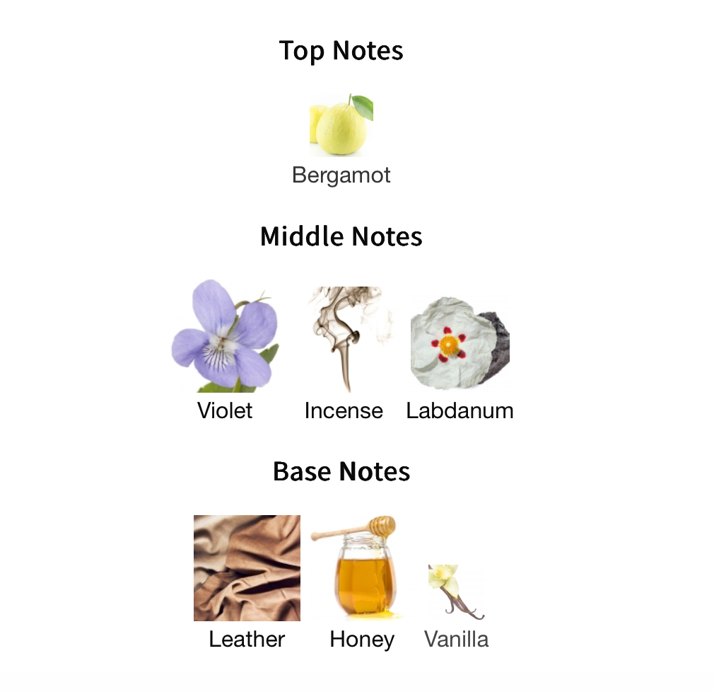 Leather, honey, and vanilla wrap the scent in a creamy, luxurious finish.